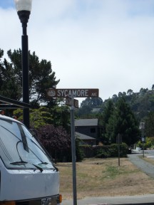 Make a left at the traffic circle, the opposite direction of Tiburon and follow Route 10 towards Mill Valley. This is Sycamore Avenue.
