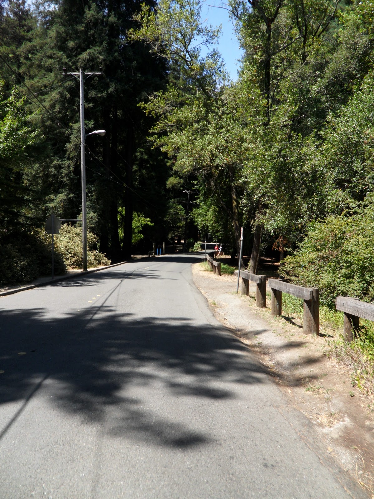 Follow narrow Cascade Drive through the redwoods. Stop to enjoy the views of the redwoods and the stream on your right through the last relatively flat section of this route.