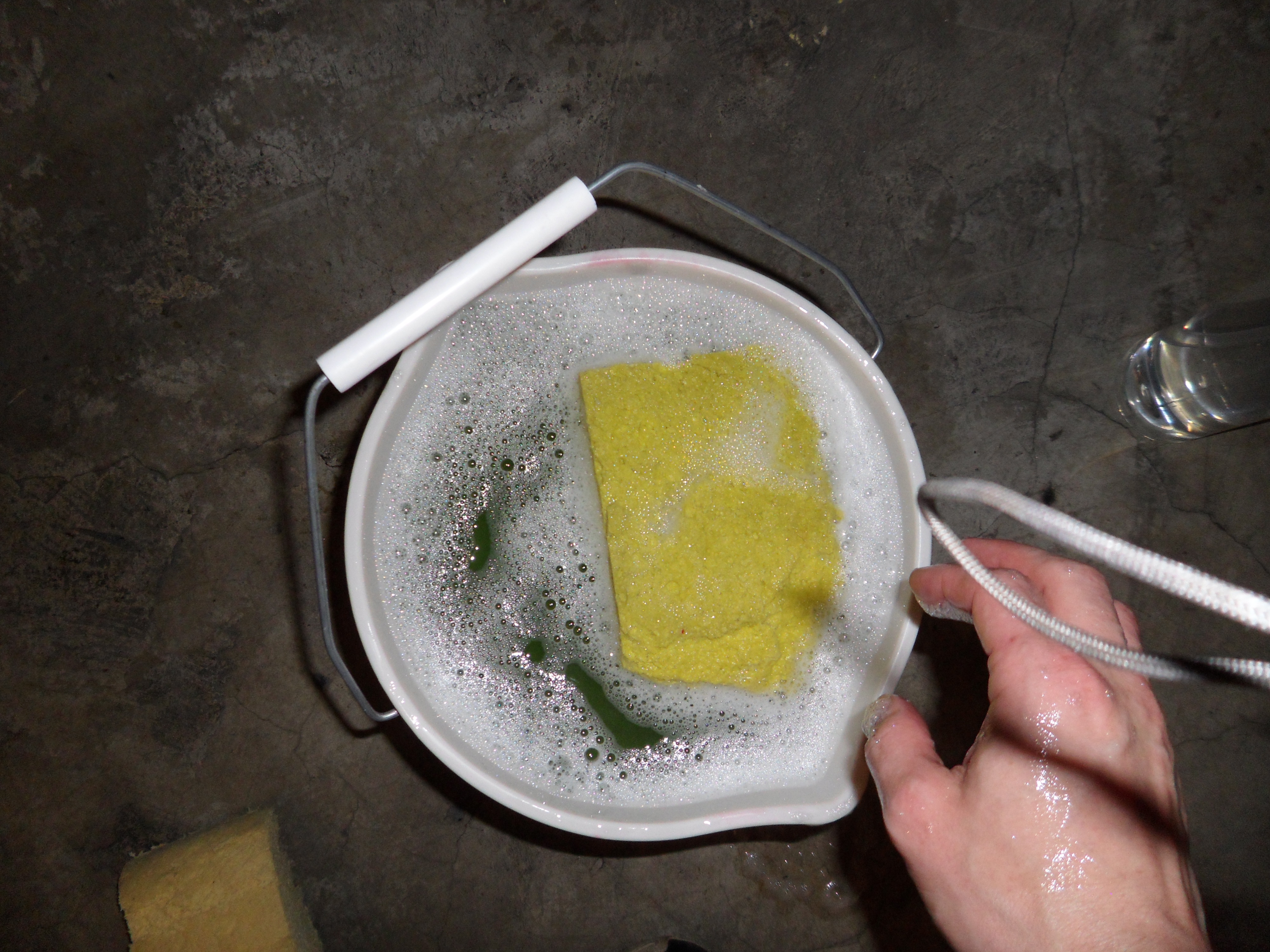 First, mix the Simple Green with hot water. Make the mix so that there are enough bubbles, but not overly sudsy.