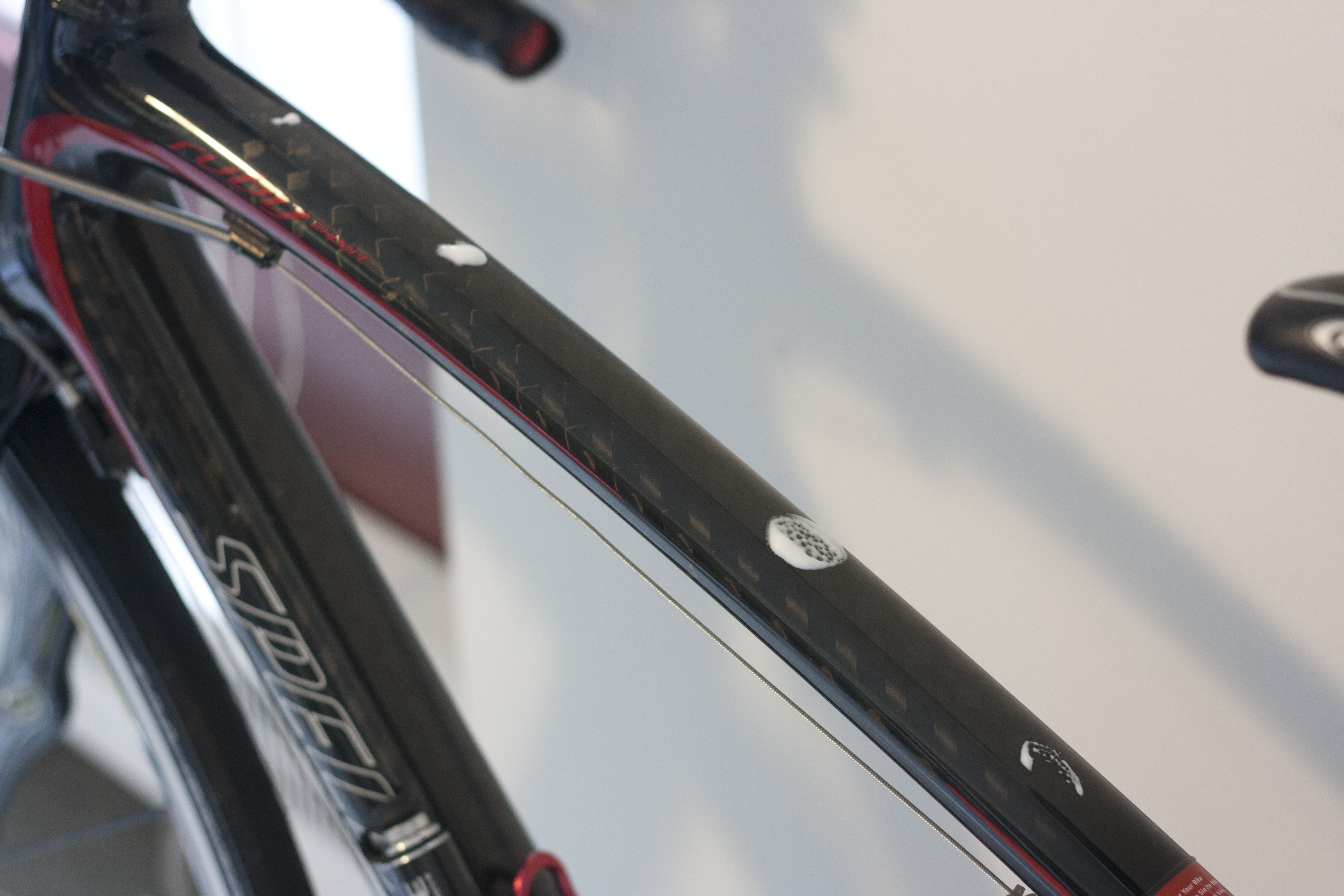 If you have a dark colored frame and have never waxed your bike, you may notice streaking or a cloudiness to the finish. Waxing your bike helps eliminate the streaking and cloudy finish.