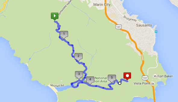 Difficulty: This trail has a technical assent with stairs and a fast descent back toward the Marin Headlands. This is definitely an intermediate ride.