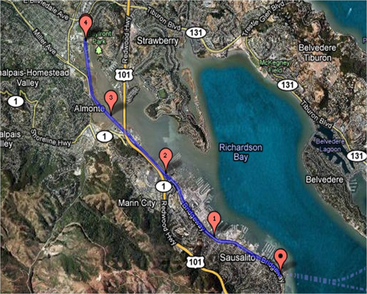 keep climbing up to the summit of Mt. Tam, or if you want to take a break from climbing and head back to Sausalito where you will meet up with the route from the