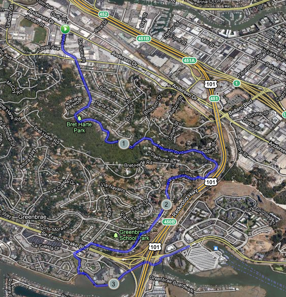 You will start a climb along Irwin Street as it winds its way through a residential neighborhood and by Bret Harte Park.