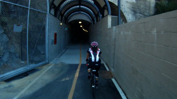 Follow Route 5 onto the Cal Park Hill Path and follow it through the Cal Park Hill Tunnel.