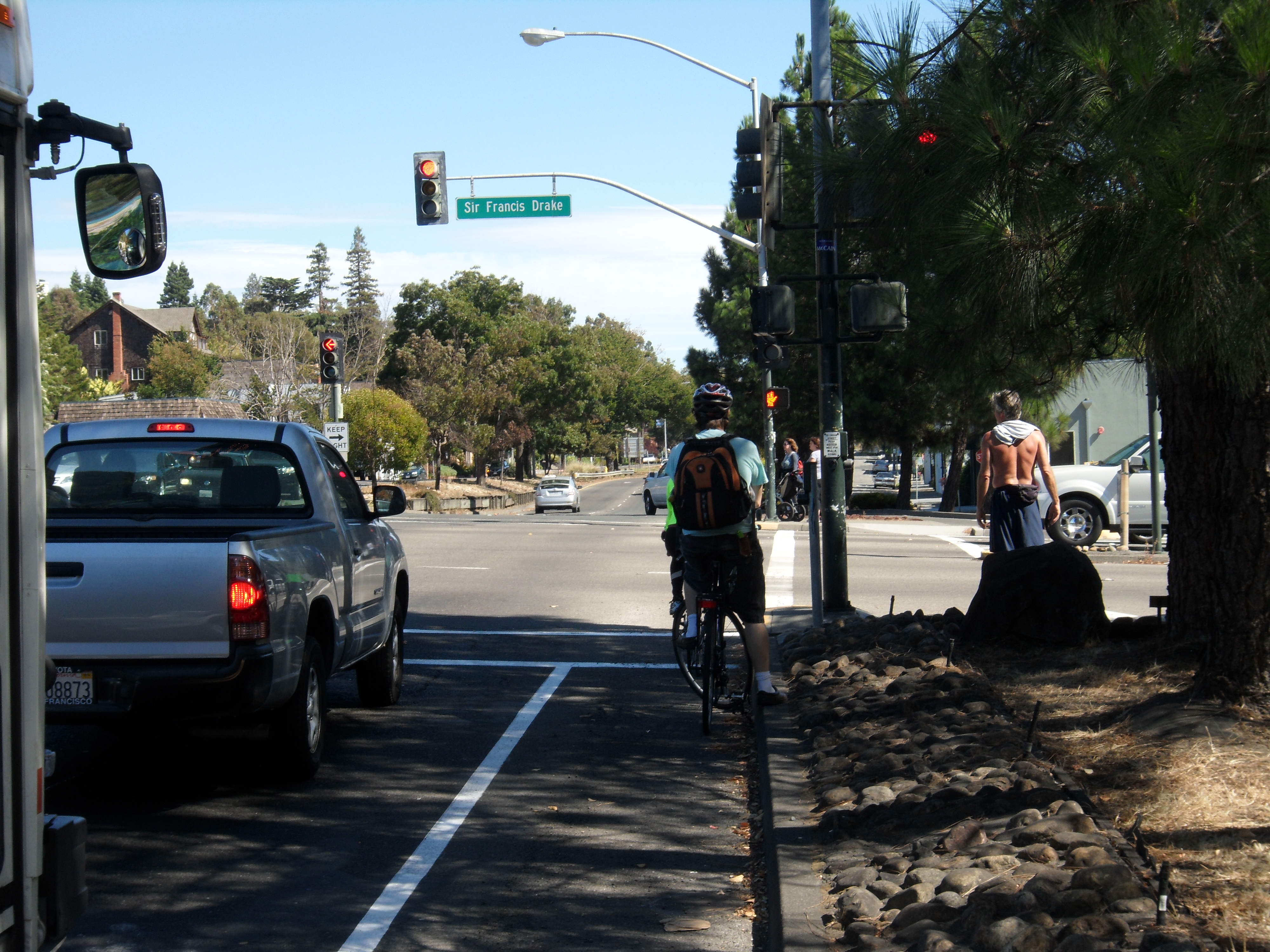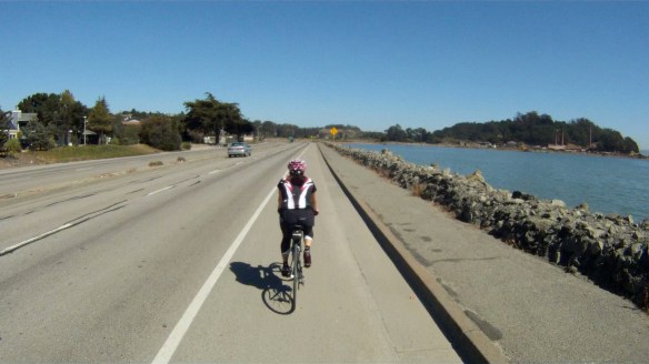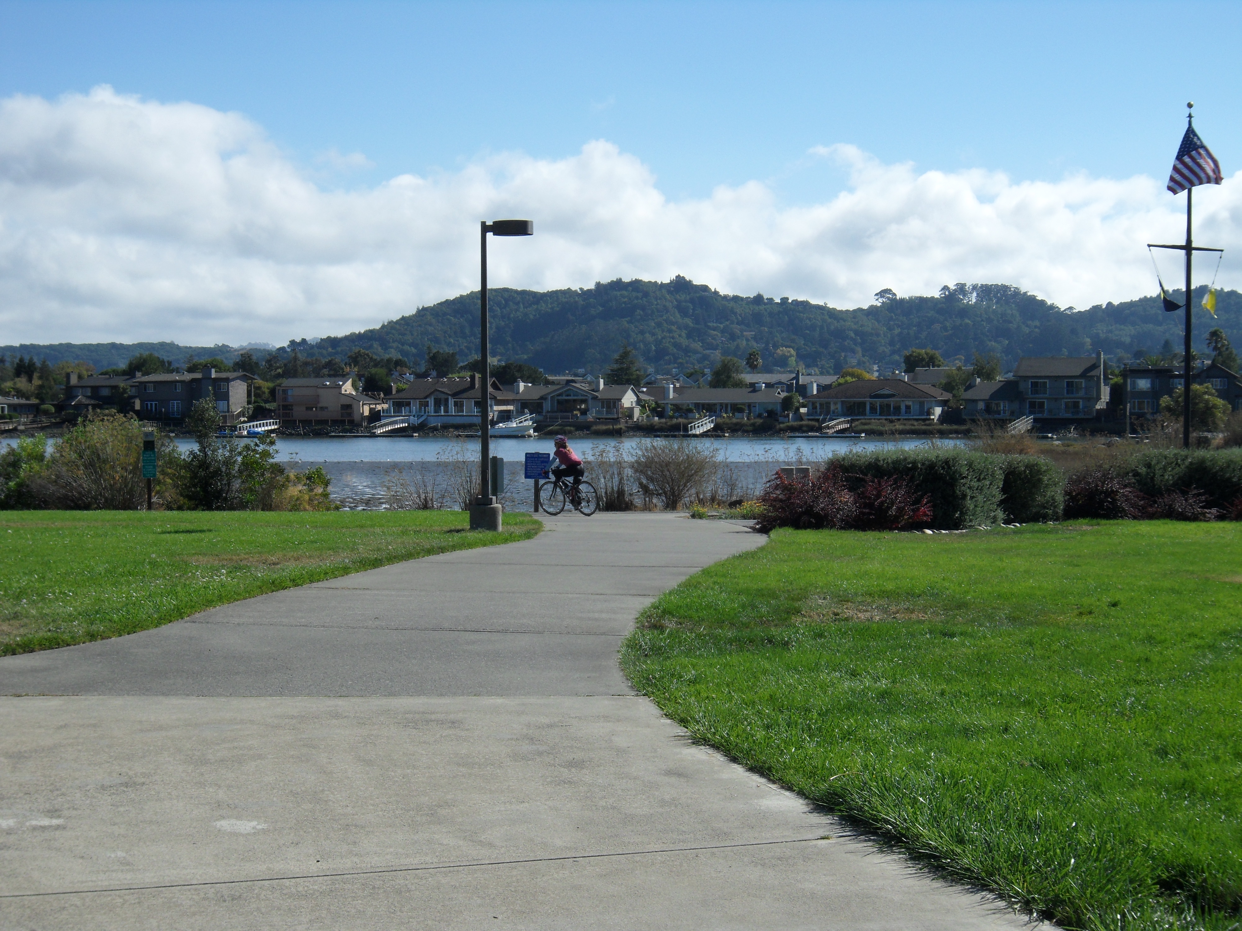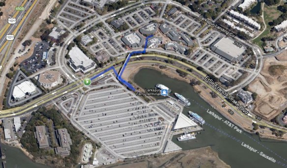 Make a left onto Route 20 and follow it to the Larkspur Ferry Terminal, but don’t turn in just yet. Keep going on the path to the stop light where we will meet with Option 2.