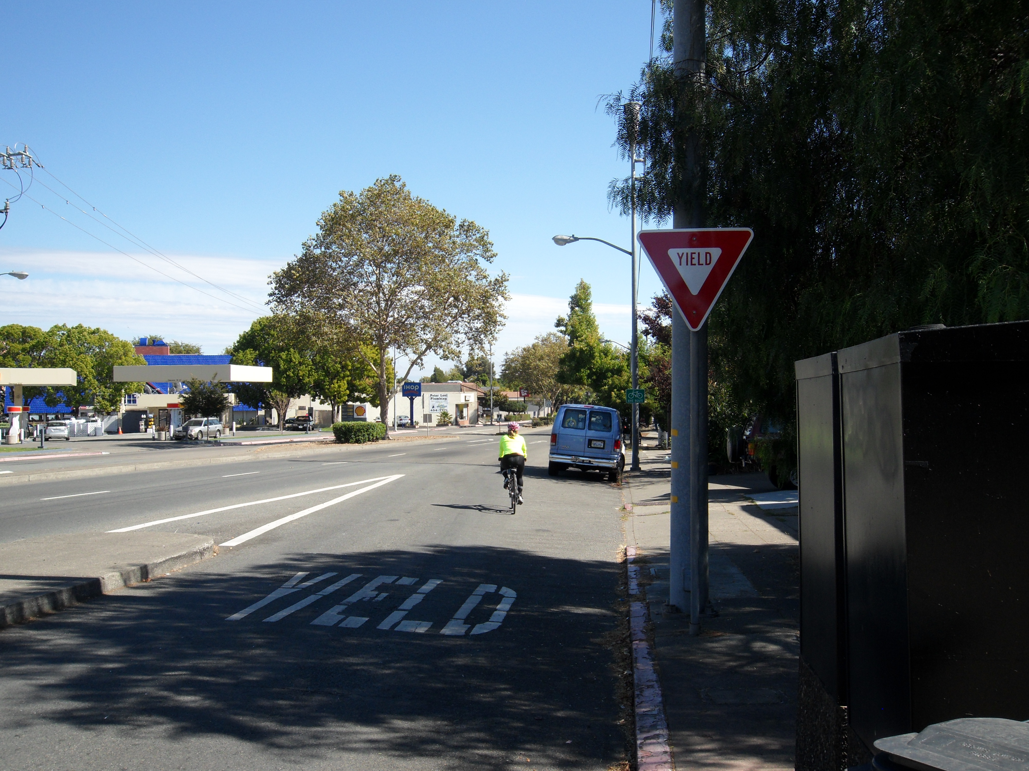 This route has a bit less traffic, but more stop lights. Neither route has a dedicated bike lane, but the traffic is a bit more friendly on 4th Street.