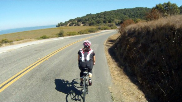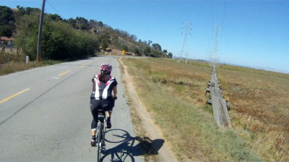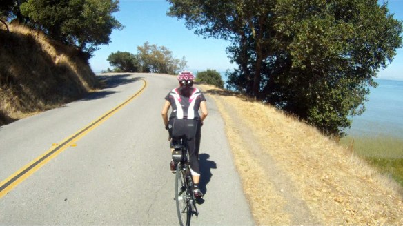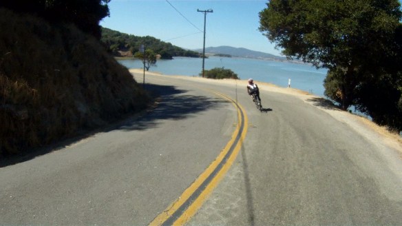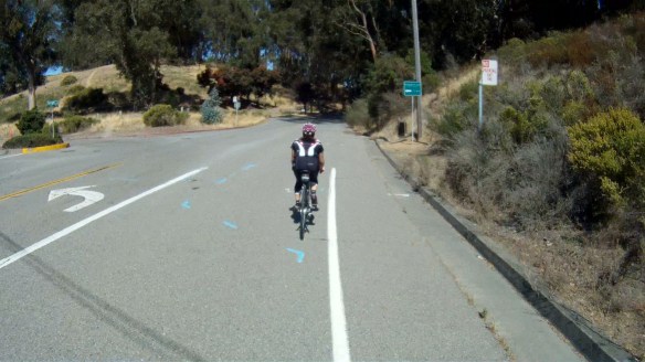 Along the climb Irwin Street becomes Tiburon Boulevard (although you will notice). After 5 to 7 minutes of climbing, it then becomes Via La Cumbre and the fast rolling portion of the ride begins. Via La Cumbre will skirt along the side of a hill with views of Larkspur and US-101 below.
