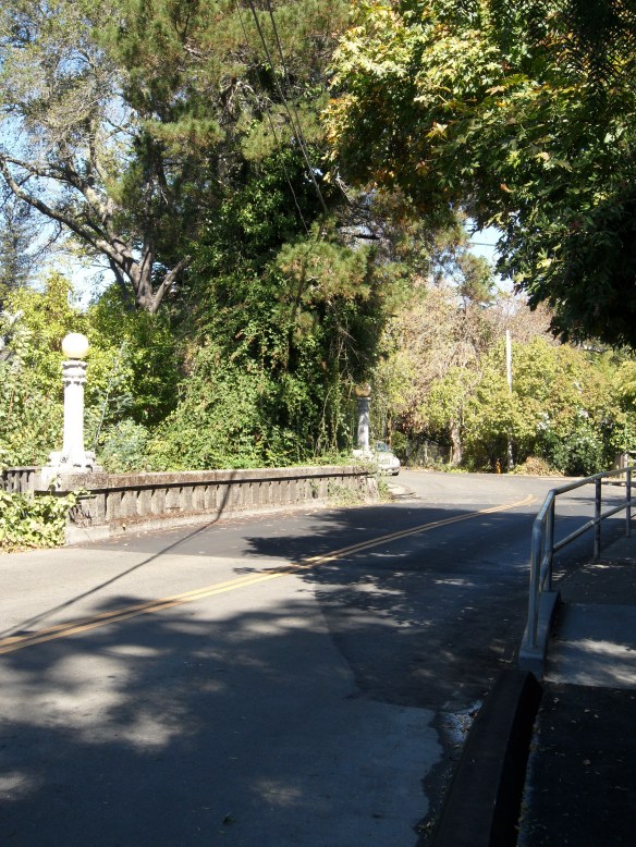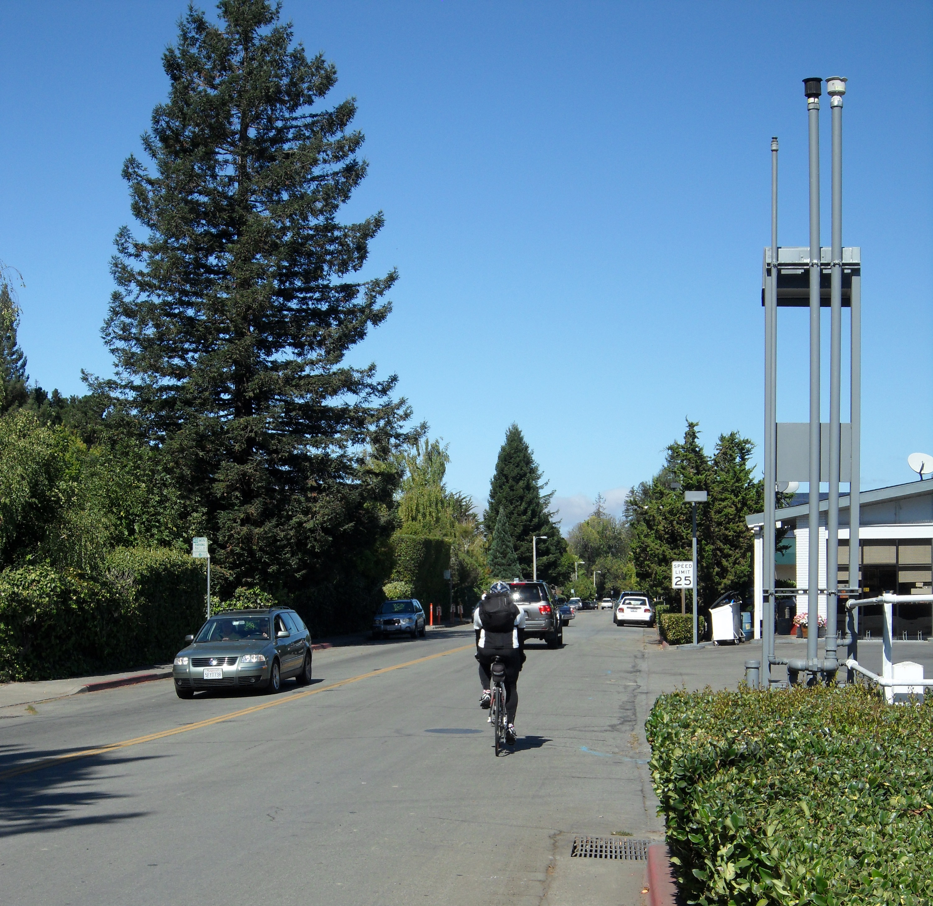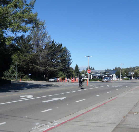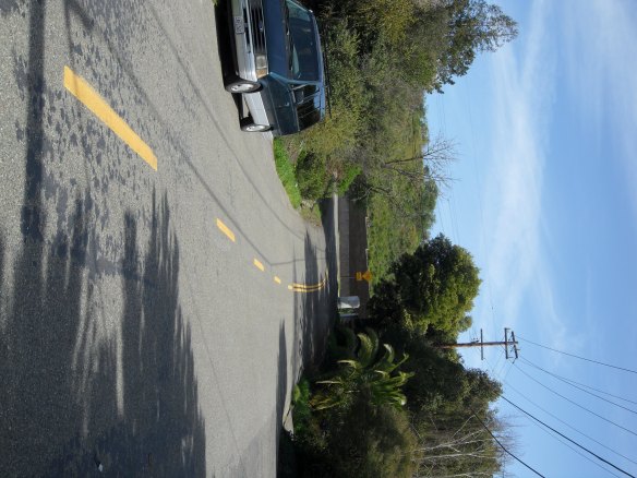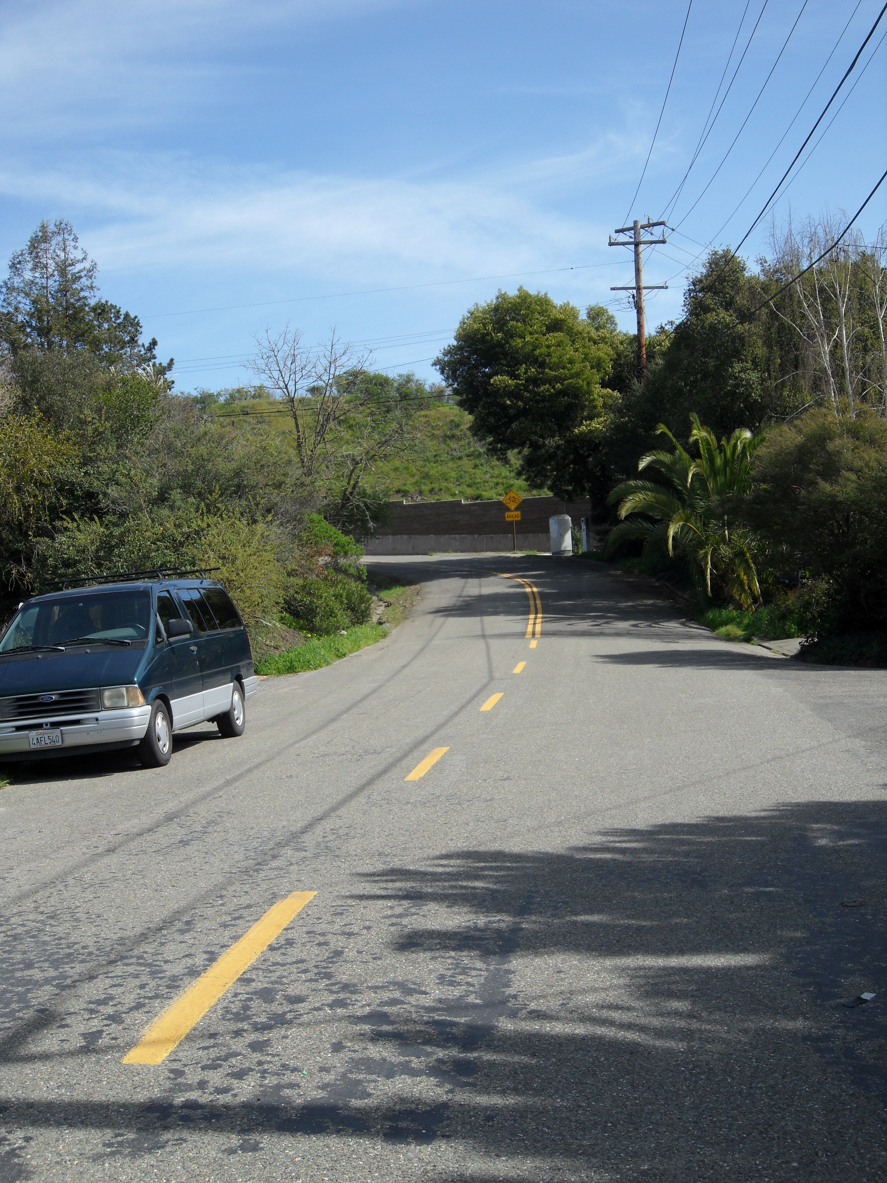 Lomita Drive turns left up a hill to the path that follows along US-101.
