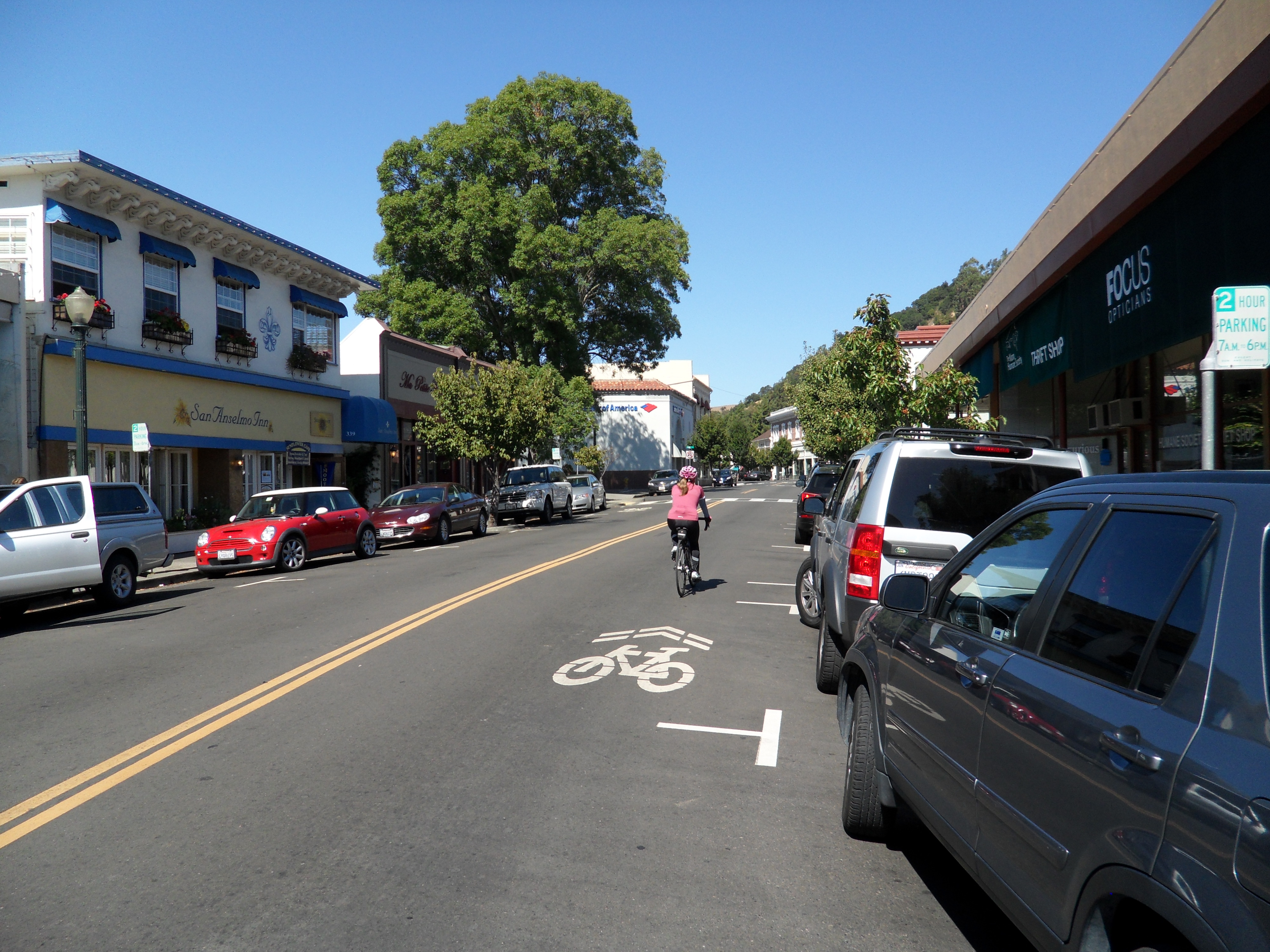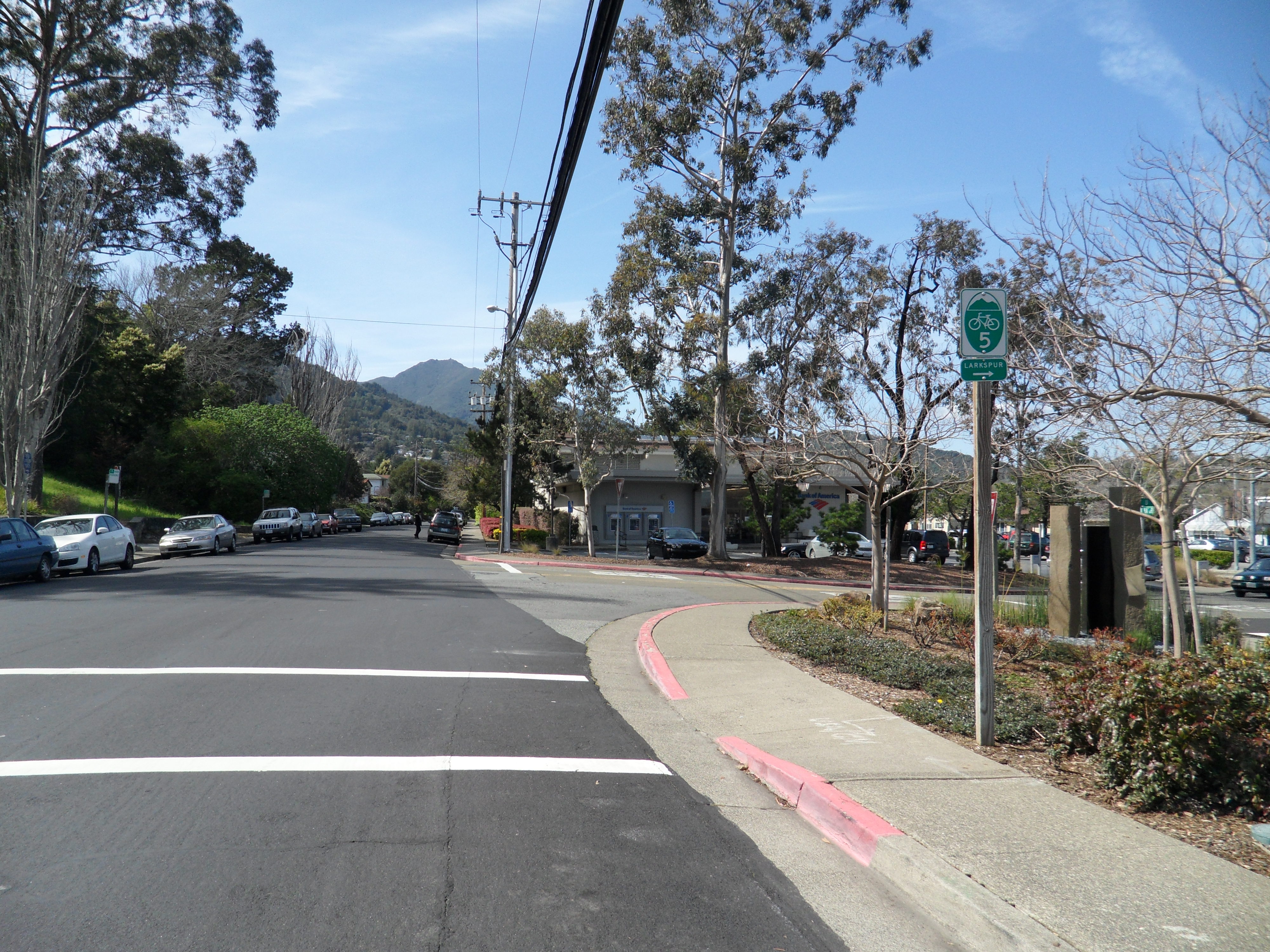 Follow Route 16 along the Larkspur Bike Path until it ends at Montecito Drive.