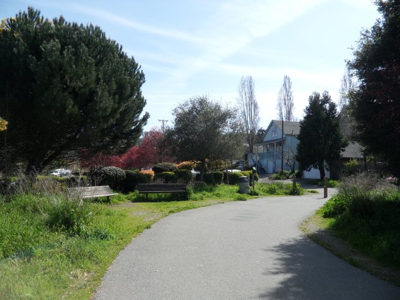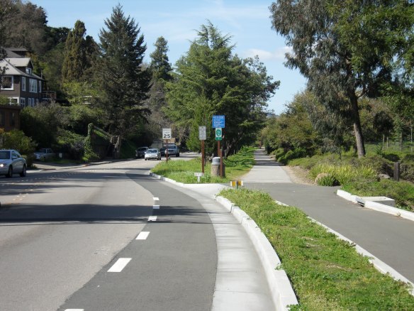 Then follow the path next to Sir Frances Drake Boulevard all the way to the Larkspur Ferry Terminal.
