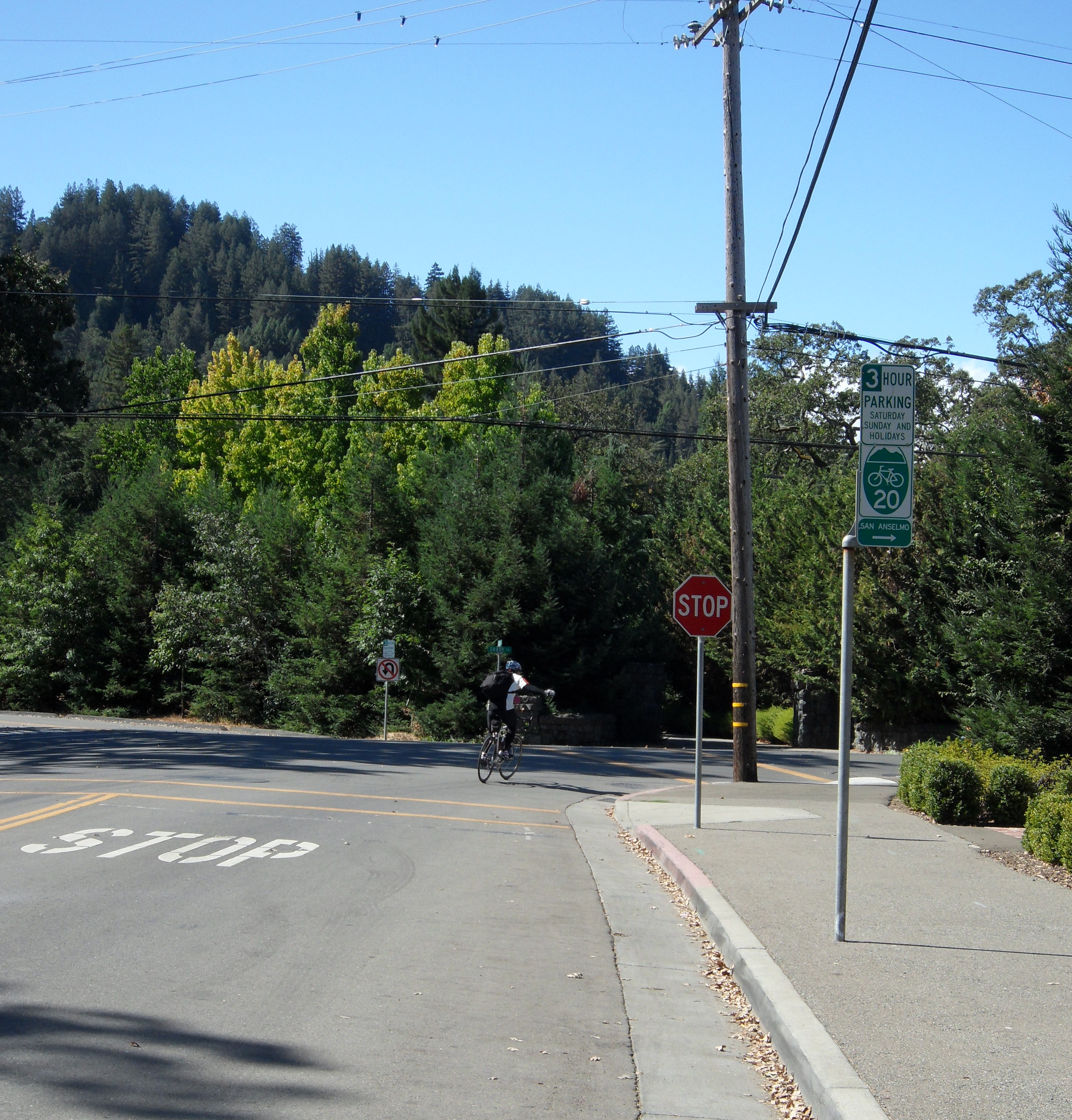 Follow the path until you reach Bon Air Road. Once you reach Bon Air Road, this is the point where you would continue along Magnolia Avenue to reach San Anselmo, Fairfax and beyond.