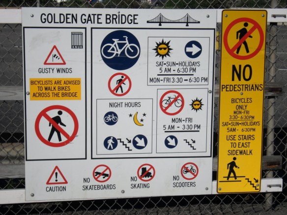 This effectively means that pedestrians, joggers, skateboarders and everyone else, EXCEPT bicyclists WILL NOT be able to cross the Bridge until it reopens in mid-January 2012. If you are a jogger and feel you should be able to run on the bike side of the bridge, DON’T! Bridge Police will be out and cite pedestrians trying to cross on the West Side of the Bridge. So if you want to walk to Sausalito, you will have to park in Marin County to do so.