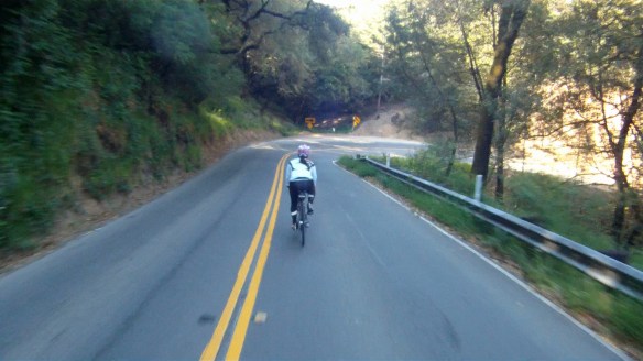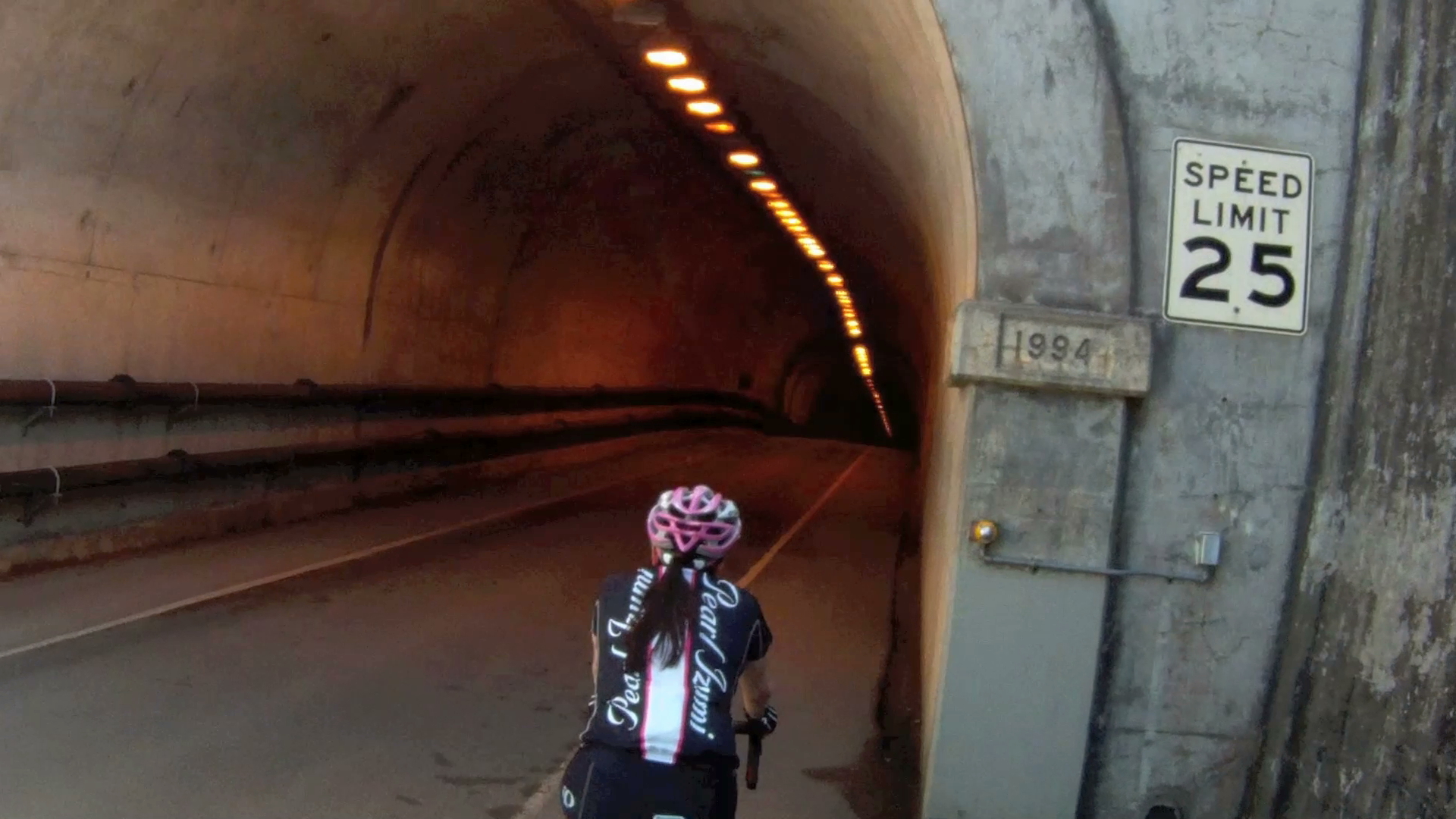 The tunnel is pretty dark, but the main obstacles are the water, mud and slime covering the bike lane. It’s all downhill, but your tires are never totally planted on the road, so be careful going through here.