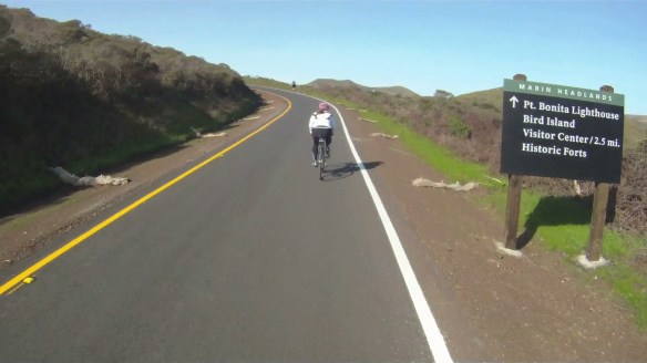 You are now on the Marin Headlands return route. It’s a slight climb back out to Alexander Avenue towards US-101 from here.